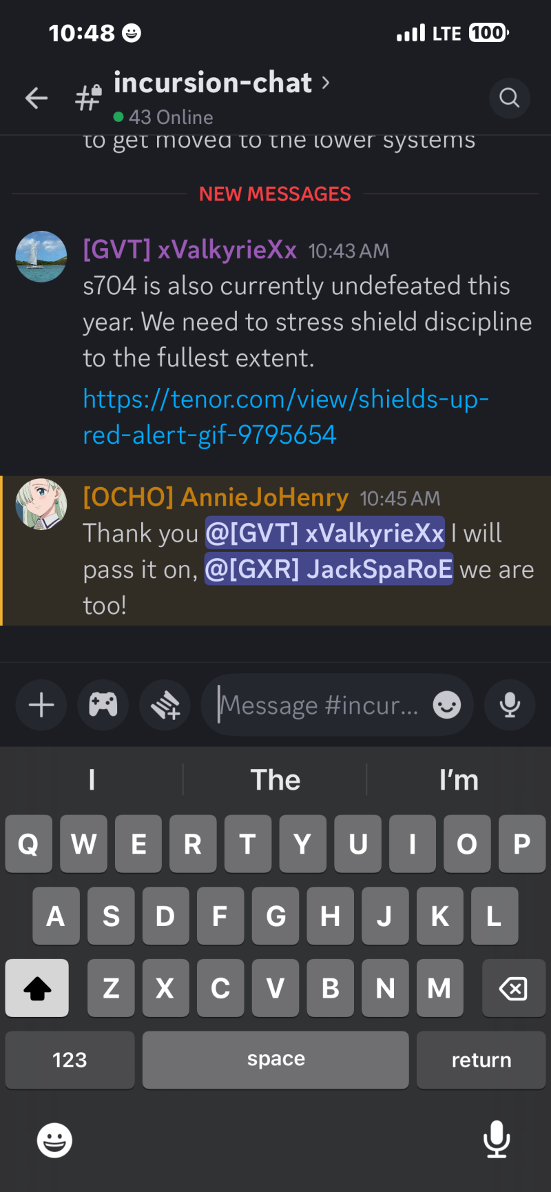 10/1/25 @everyone We need your help. Our deadline we made to move bases to level 19 and under systems has passed. There are MANY still who have not moved. We are extending until tomorrow Thursday 11 am cst (central standard time). This is the only extension. Please remind everyone in game they need to move otherwise we will be forced to kick and drain bases. Otherwise our opponent will do it once incursion starts. They are undefeated and we can't just hand them points without a fight. Thank you.
